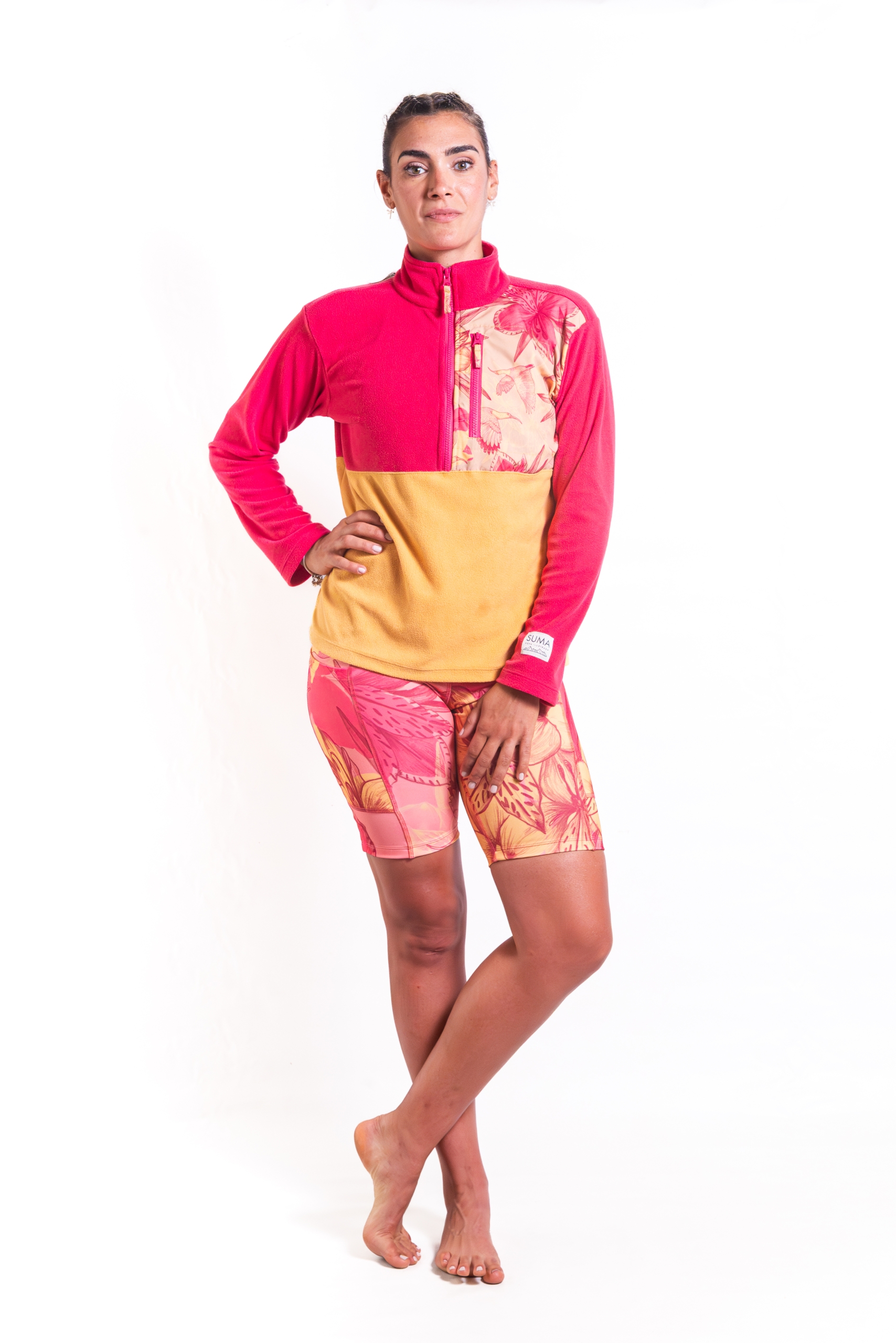 Calza biker anatómica, largo arriba de la rosilla, tiene recortes laterales y bolsillos a cada lado, con el tamaño perfecto para guardar el celu. Cintura alta, doble embolsada con elastico más ancho, que sostiene sin apretar. Incorporamos un bolsillo interno en la cintura trasera, muy util para salir a correr, o hacer actividades. Confeccionada con costuras planas, y un tejido de microfibra pesada, que contiene la musculatura, y deja pasar la transpiracion hacia el exterior. Son de secado rápido, no se arrugan ni deforman.