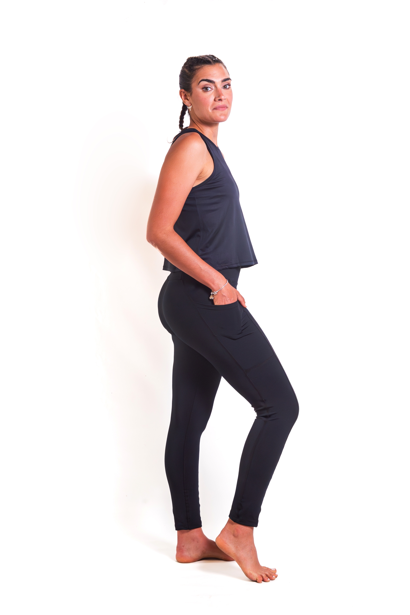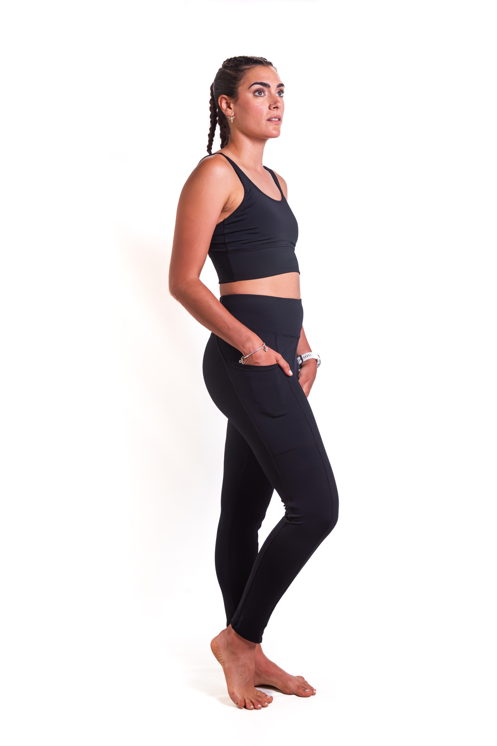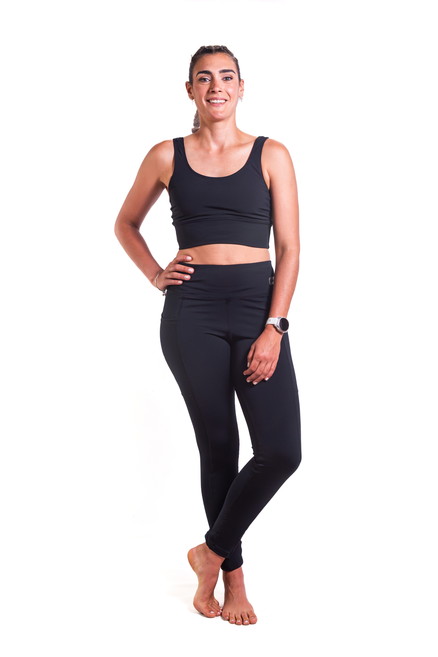 Calza larga anatómica, tiene recortes laterales y bolsillos a cada lado, con el tamaño perfecto para guardar el celu. Cintura alta, doble embolsada con elastico más ancho, que sostiene sin apretar. Incorporamos un bolsillo interno en la cintura trasera, muy util para salir a correr, o hacer actividades. Confeccionada con costuras planas, y un tejido de microfibra pesada, que contiene la musculatura, y deja pasar la transpiracion hacia el exterior. Son de secado rápido, no se arrugan ni deforman.