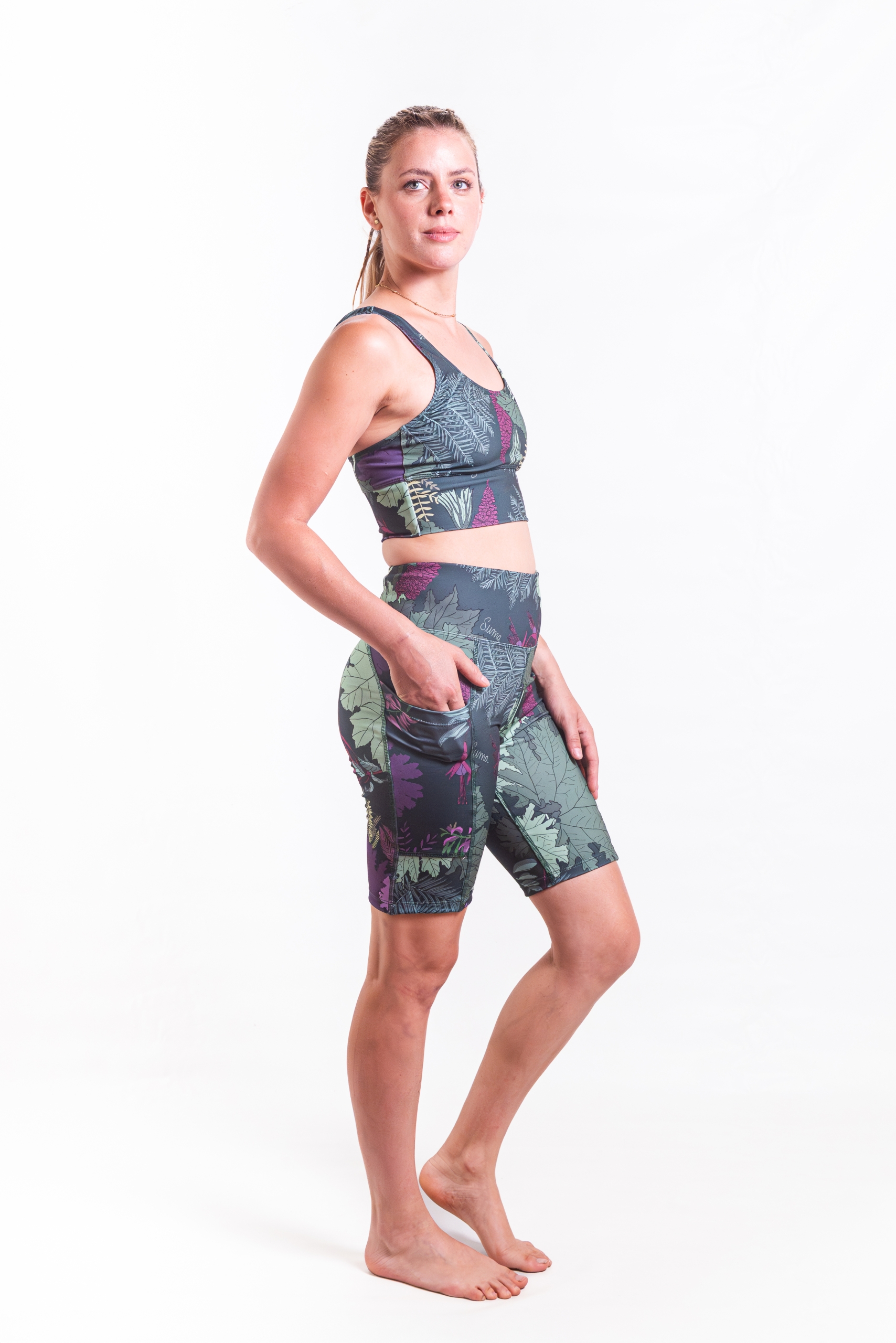 Calza biker anatómica, largo arriba de la rosilla, tiene recortes laterales y bolsillos a cada lado, con el tamaño perfecto para guardar el celu. Cintura alta, doble embolsada con elastico más ancho, que sostiene sin apretar. Incorporamos un bolsillo interno en la cintura trasera, muy util para salir a correr, o hacer actividades. Confeccionada con costuras planas, y un tejido de microfibra pesada, que contiene la musculatura, y deja pasar la transpiracion hacia el exterior. Son de secado rápido, no se arrugan ni deforman.