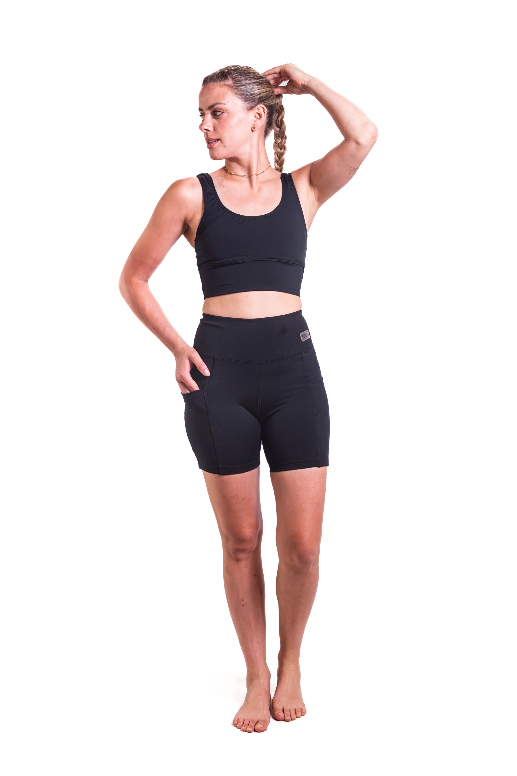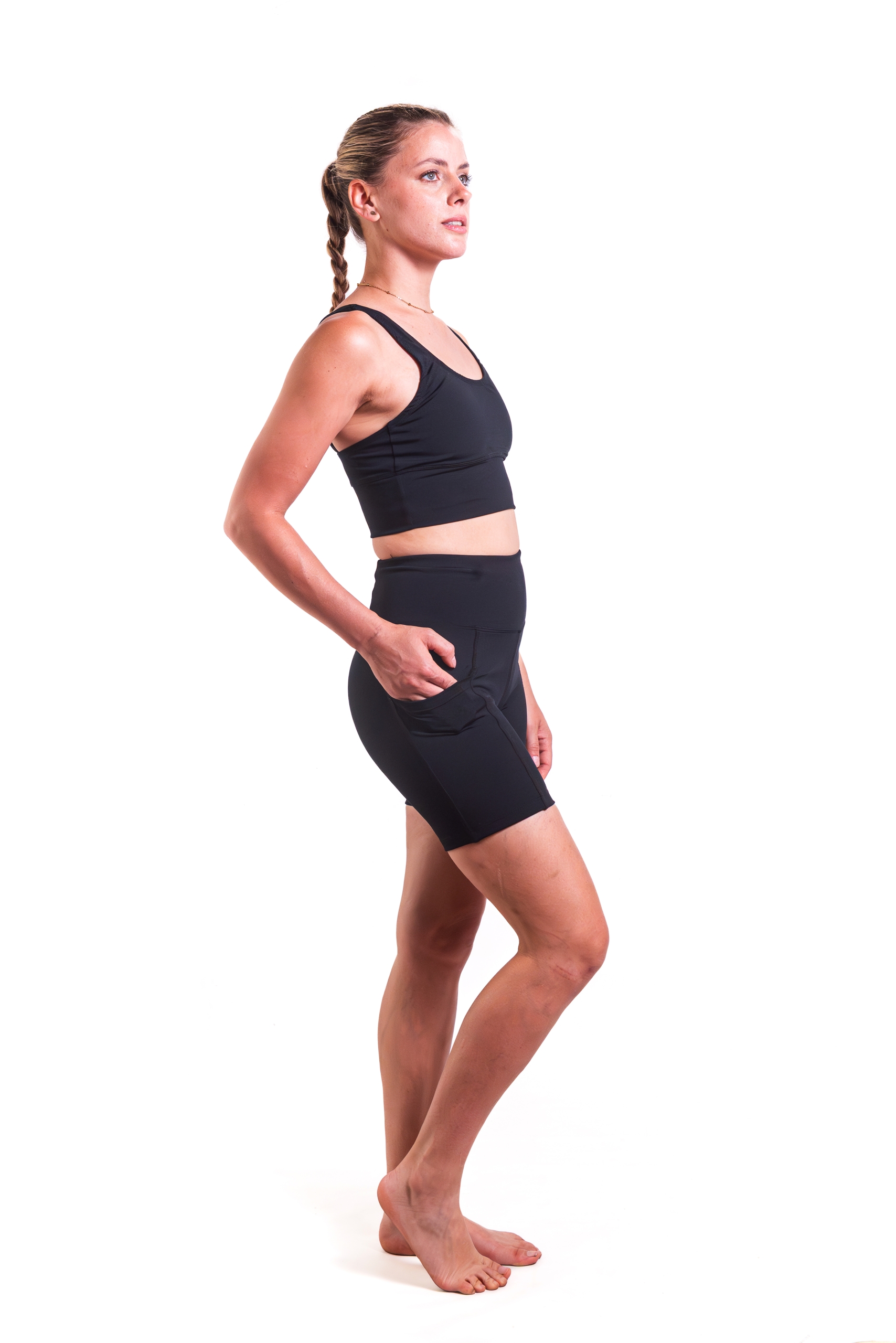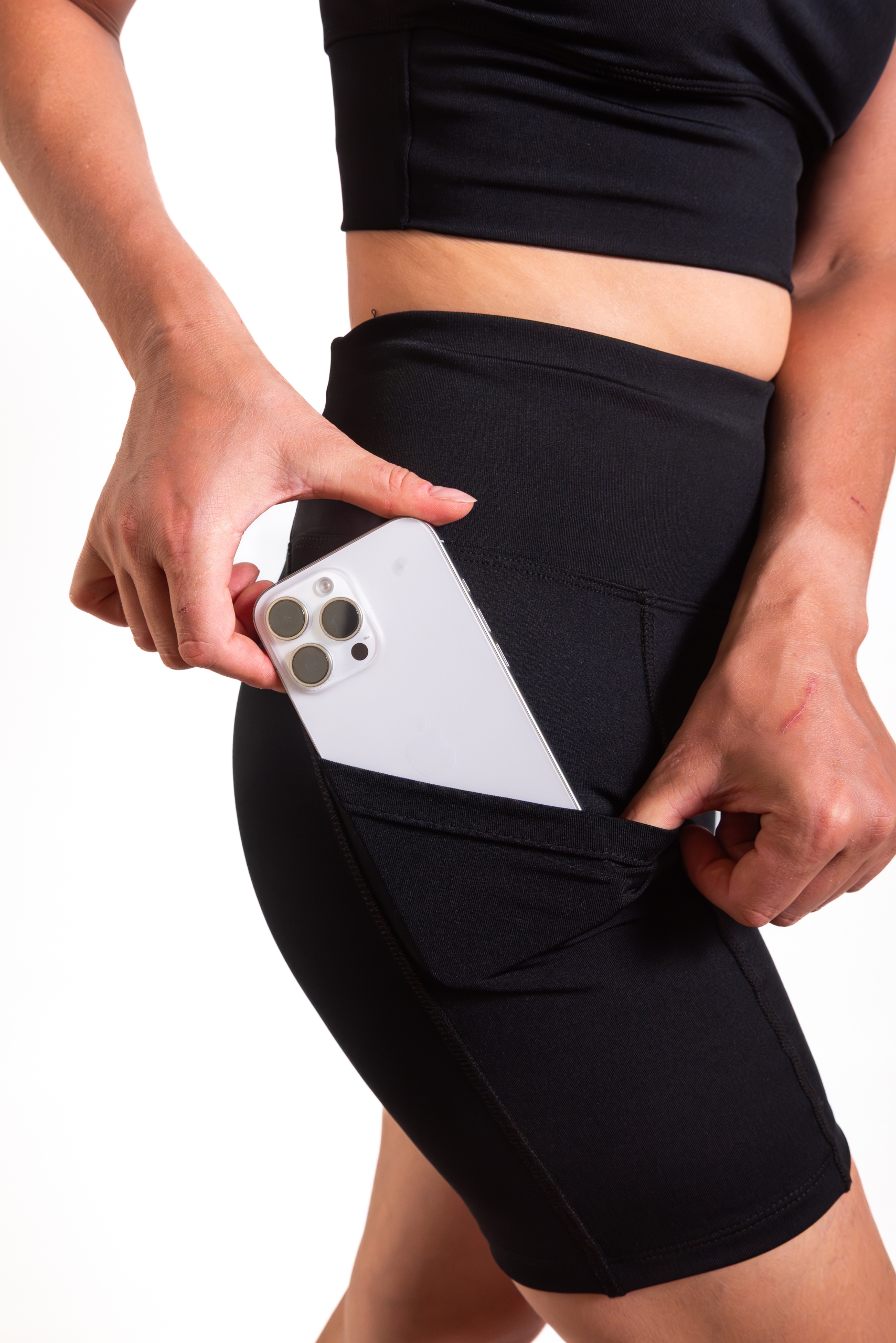 Calza corta, tipo short, anatómica, tiene recortes laterales y bolsillos a cada lado, con el tamaño perfecto para guardar el celu. Cintura alta, doble embolsada con elastico más ancho, que sostiene sin apretar. Incorporamos un bolsillo interno en la cintura trasera, muy util para salir a correr, o hacer actividades. Confeccionada con costuras planas, y un tejido de microfibra pesada, que contiene la musculatura, y deja pasar la transpiracion hacia el exterior. Son de secado rápido, no se arrugan ni deforman.