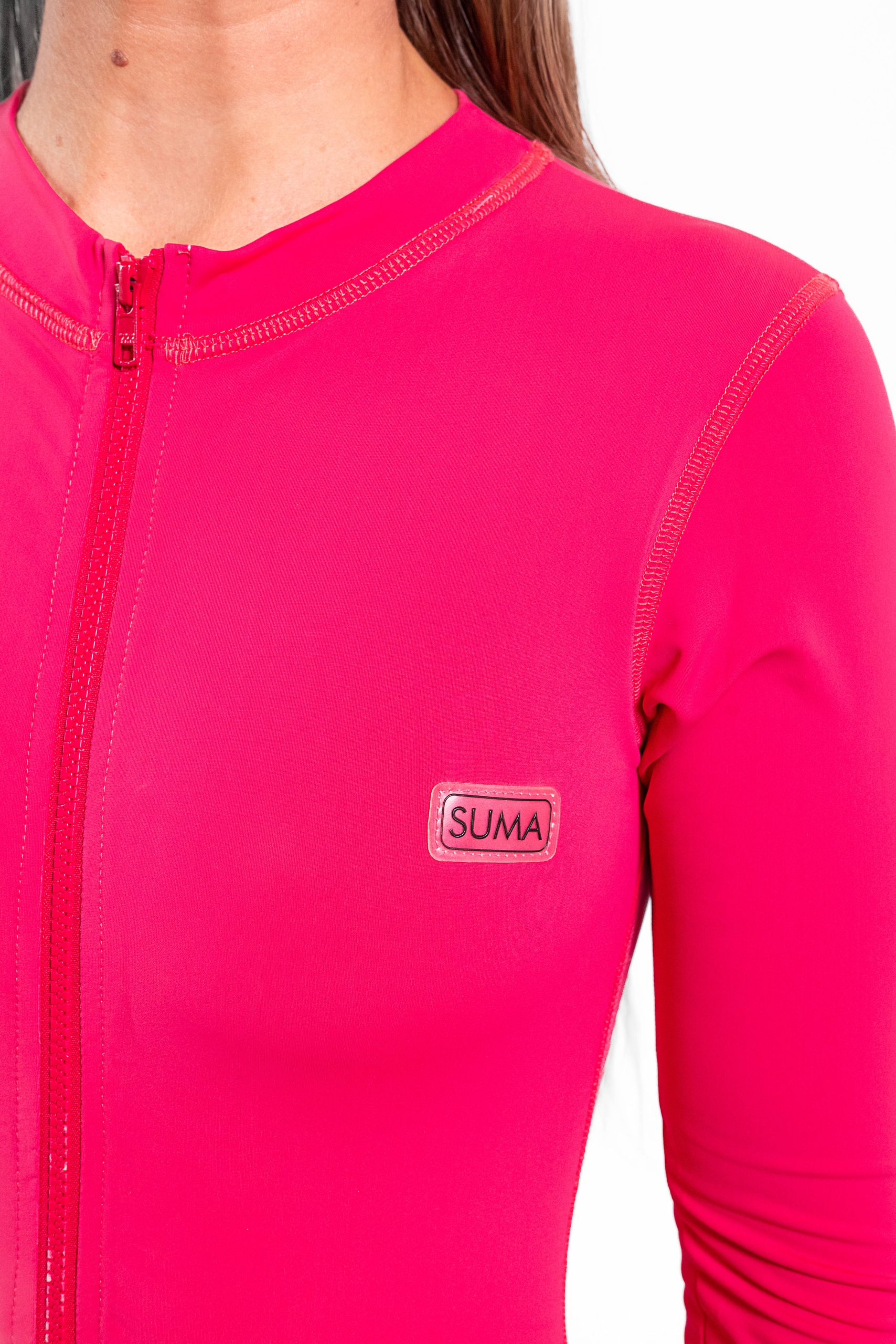 Malla enteriza, con mangas largas, escote cerrado y cierre frontal. Terminaciones y detalles con bordador. Con todo el delantero forrado. Pensada para las actividades y deportes acuaticos. Confeccionada con un tricot de excelente calidad, que ayuda a que las estampas y colores perduren con el uso, sin sufrir cambios.