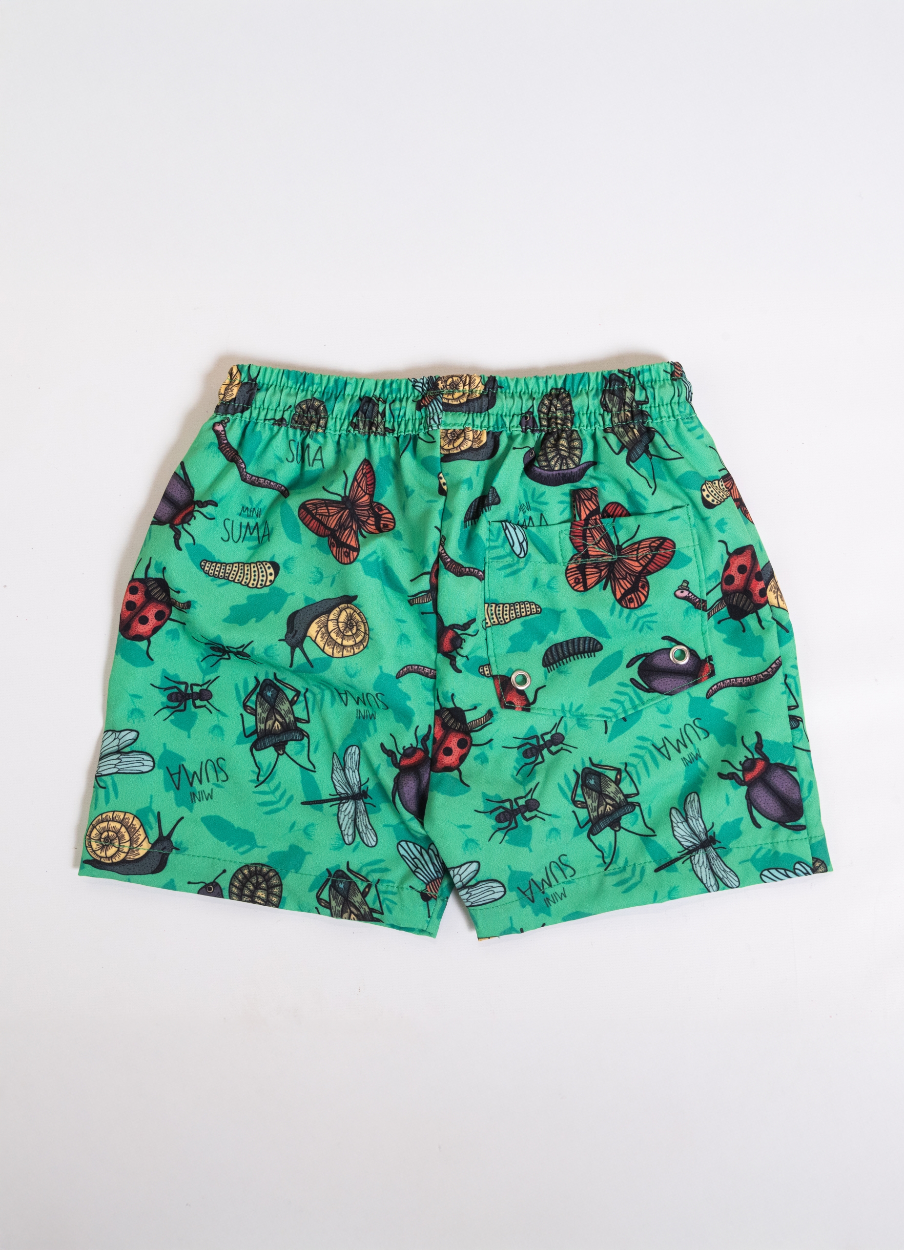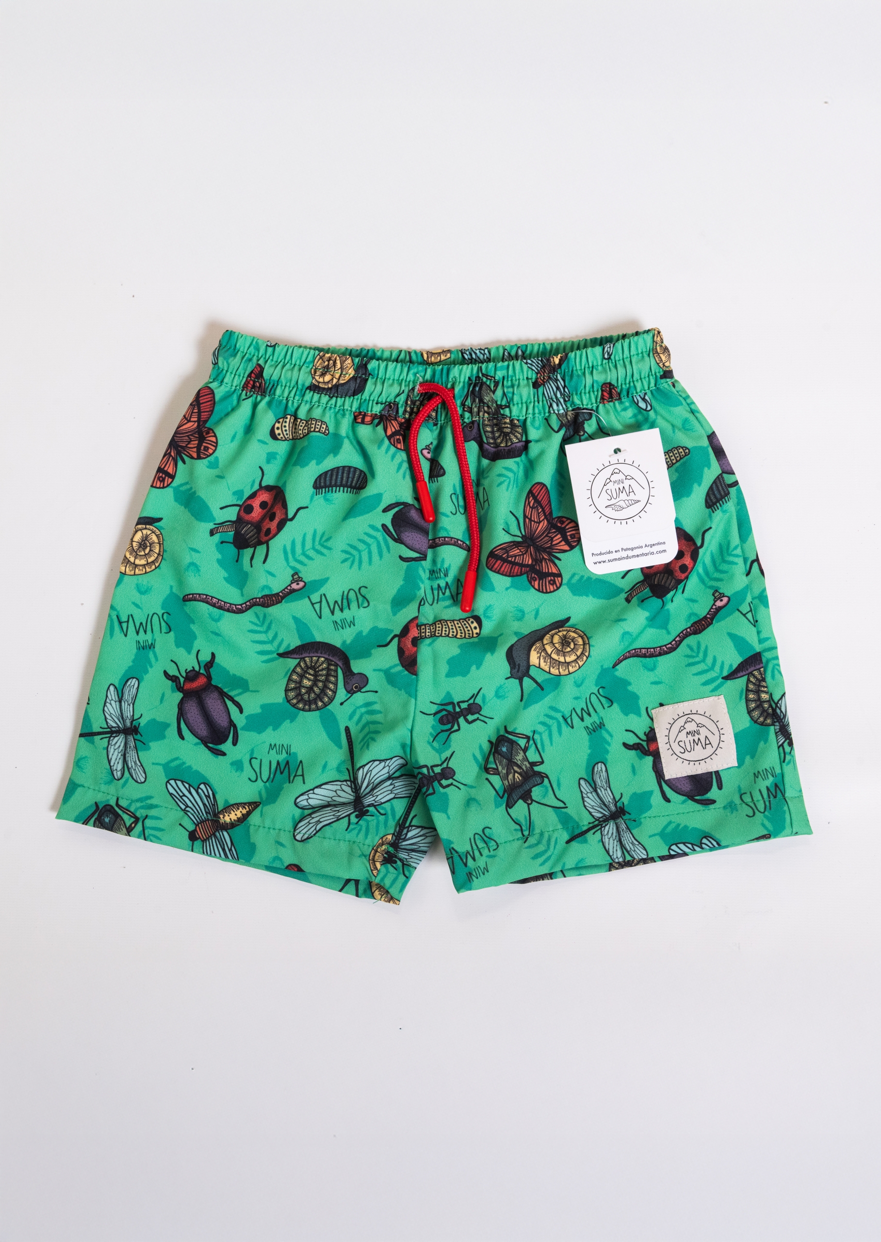 Short de agua para niños. De corte clasico, con suspensor interno en tela de red. Tiene elastico en cintura y cordon para regular. Bolsillo trasero con velcro. La tela es repelente al agua, de secado rapido, con un poco de elasticidad para mayor comodidad.