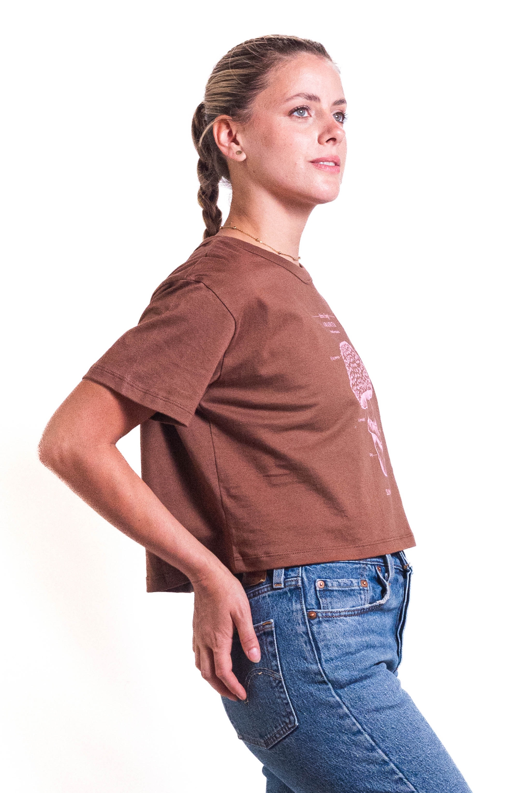 Remera confeccionada en jersey 100% algodón. El corte es crop, ni muy corta ni muy larga. Ideal para usar con calzas o pantalones tiro alto. Con estampa en el delantero. *AL SER UNA TELA 100% ALGODON, LAS MEDIDAS PUEDEN VARIAR EN EL PRIMER LAVADO. RECOMENDAMOS LAVARLA A MANO.