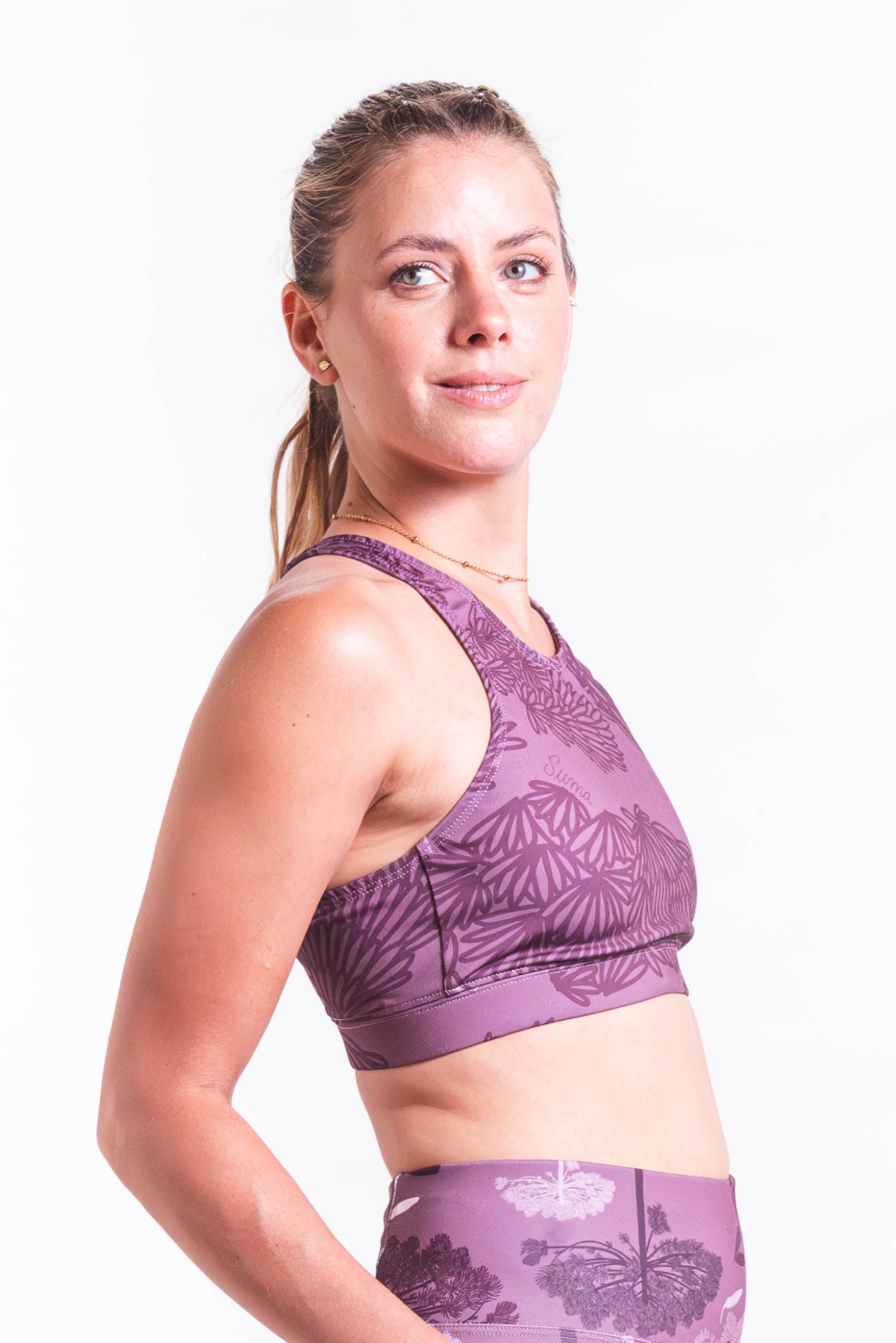 Corpiño deportivo, confeccionado en microfibra pesada, de buen agarre que proteje otorgando comodidad, pero ligera y de secado rápido a la vez, permitiendo que la piel respire mientras haces deporte. El delantero está forrado, con una abertura para colocar tazas. Elastico de 3cm de ancho en el bajo busto, para mejor sostén. Tiene el escote delantero más cerrado que el resto, y sisas cavadas. La espalda descubierta, con breteles cruzados.