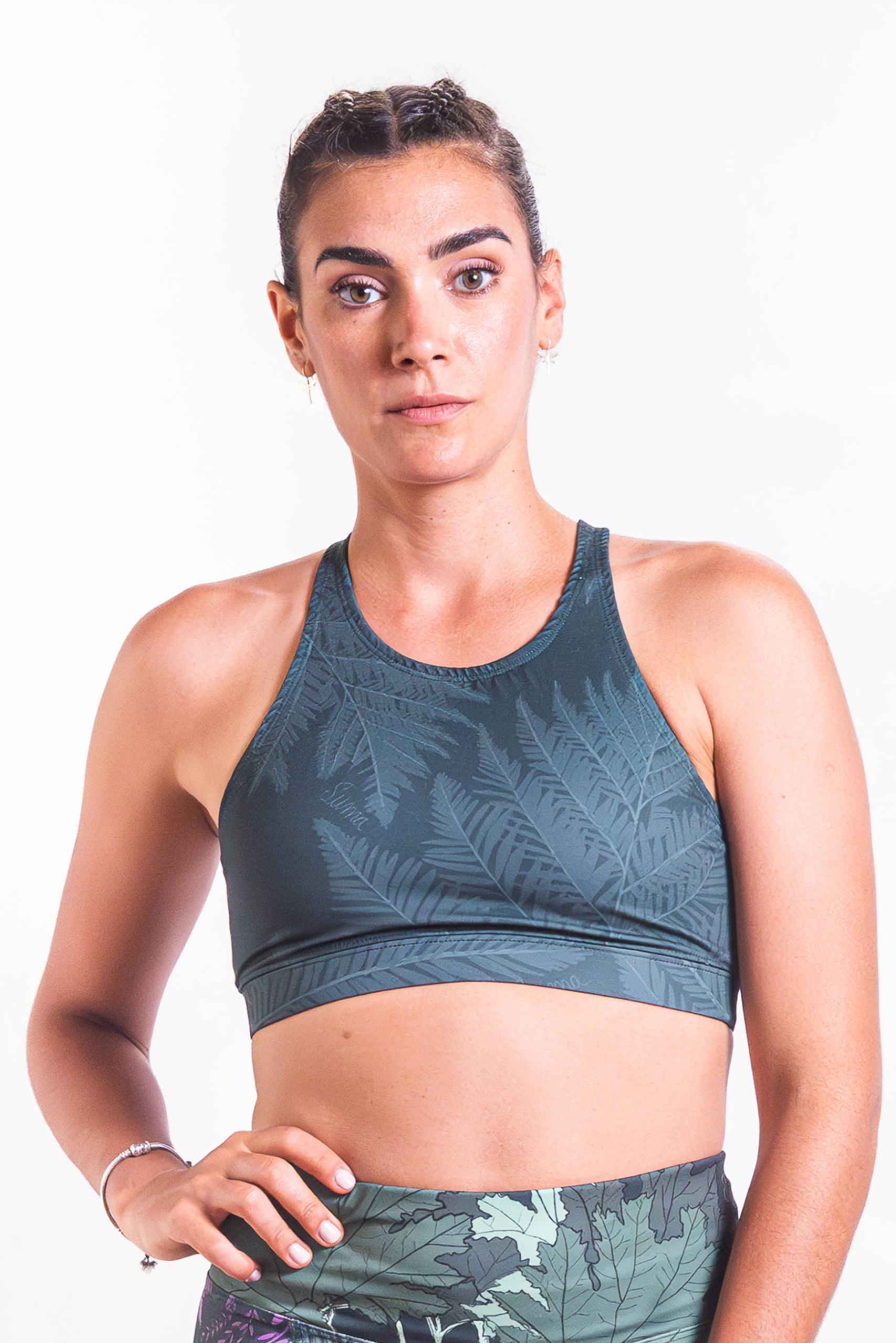 Corpiño deportivo, confeccionado en microfibra pesada, de buen agarre que proteje otorgando comodidad, pero ligera y de secado rápido a la vez, permitiendo que la piel respire mientras haces deporte. El delantero está forrado, con una abertura para colocar tazas. Elastico de 3cm de ancho en el bajo busto, para mejor sostén. Tiene el escote delantero más cerrado que el resto, y sisas cavadas. La espalda descubierta, con breteles cruzados.